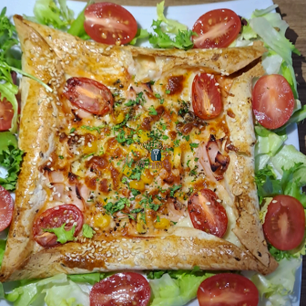 - Zapiekany camembert z pomidorami i bagietką czosnkową