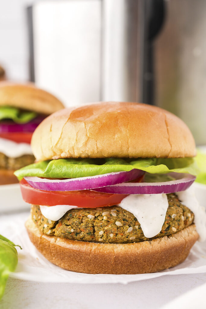burgery falafel, zdrowe przepisy, wegetariańskie dania, air fryer przepisy, szybkie burgery