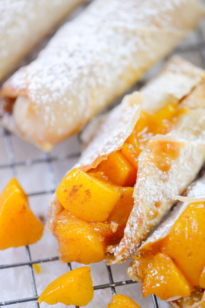 Słodkie rurki brzoskwiniowe to wyjątkowy deser, który z pewnością zachwyci każdego miłośnika owocowych smaków. Wykorzystując cienkie opakowania do sajgonek, te małe smakowitości są napełnione soczystymi brzoskwiniami, a następnie frytowane w air fryerze, co nadaje im chrupiącej tekstury. Możesz je podać z słodką polewą waniliową lub po prostu posypać cukrem pudrem dla prostoty. To wspaniały przepis na spotkania towarzyskie lub rodzinne imprezy, a także doskonała alternatywa dla tradycyjnego ciasta brzoskwiniowego, które można jeść w formie przekąski. Gwarantuję, że nikt się im nie oprze.
